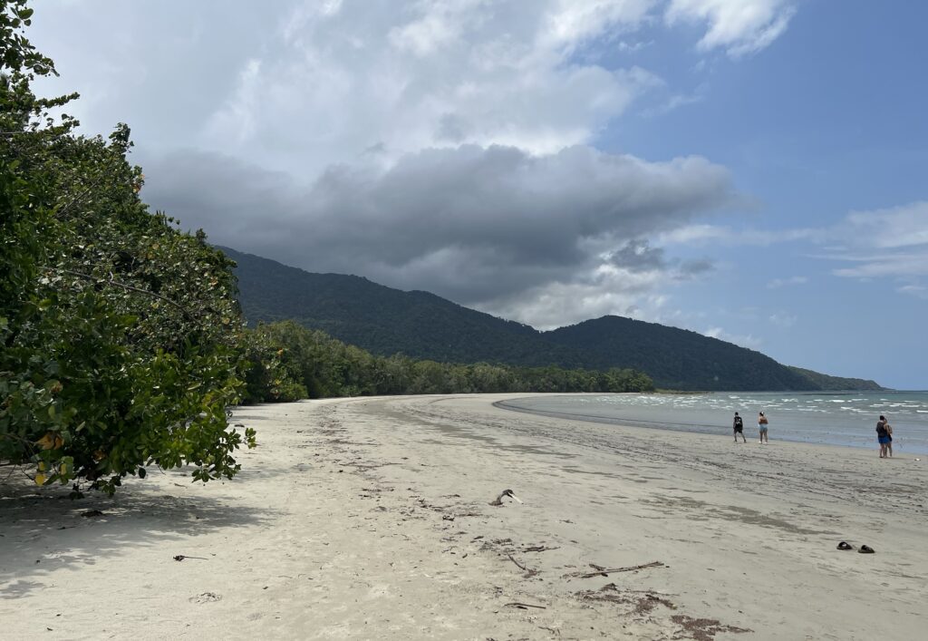 Our penultimate stop was Cape Tribulation Beach – literally the spot where the βrainforest meets the reefβ. Of course, it’s jellyfish season so there was no swimming in the sea, but the cooling breeze and the light drizzle were both a welcome relief to the heat and humidity.